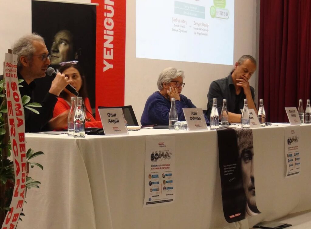 Odman, Soma Havzasında; altın, kömür, kuvars, feldspat gibi özellikle 4’üncü grup maden ocaklarının 1. derece fay hattı üzerinde olduğu hatırlatarak, işçi katliamlarına ve ekokırıma yol açmasından bahsetti.